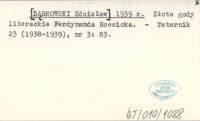[DˇBROWSKI Zdzisław] 1939 r Złote gody literackie Ferdynanda Hoesicka.