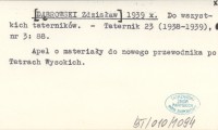 [DˇBROWSKI Zdzisław] 1939 x Do wszystkich taterników.