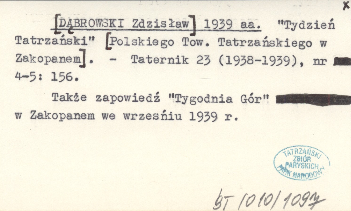 [DĄBROWSKI Zdzisław] 1939 aa "Tydzień Tatrzański" [Polskiego Towarzystwa Tatrzańskiego w Zakopanem].