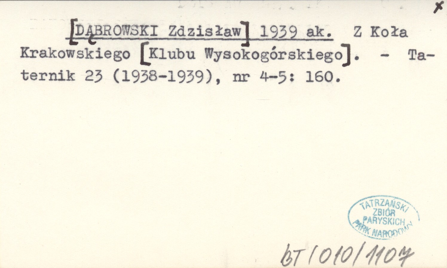 [DĄBROWSKI Zdzisław] 1939 ak Z Koła Krakowskiego [Klubu Wysokogórskiego].