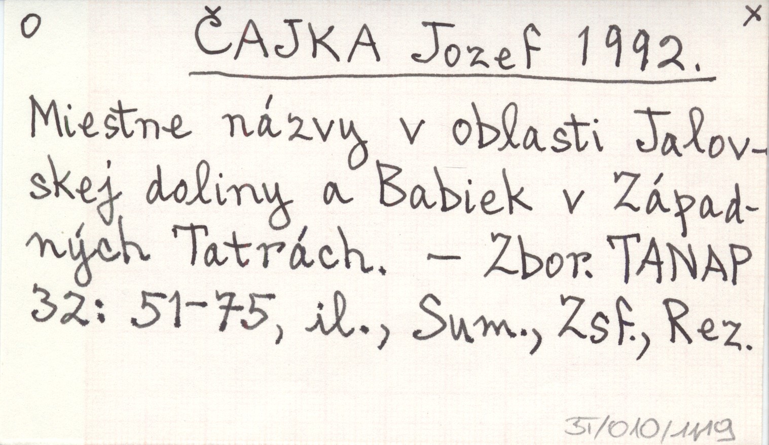 ČAJKA Jozef 1992 Miestne názvy v oblasti Jalovskej doliny a Babiek Záoadných Tatrách.