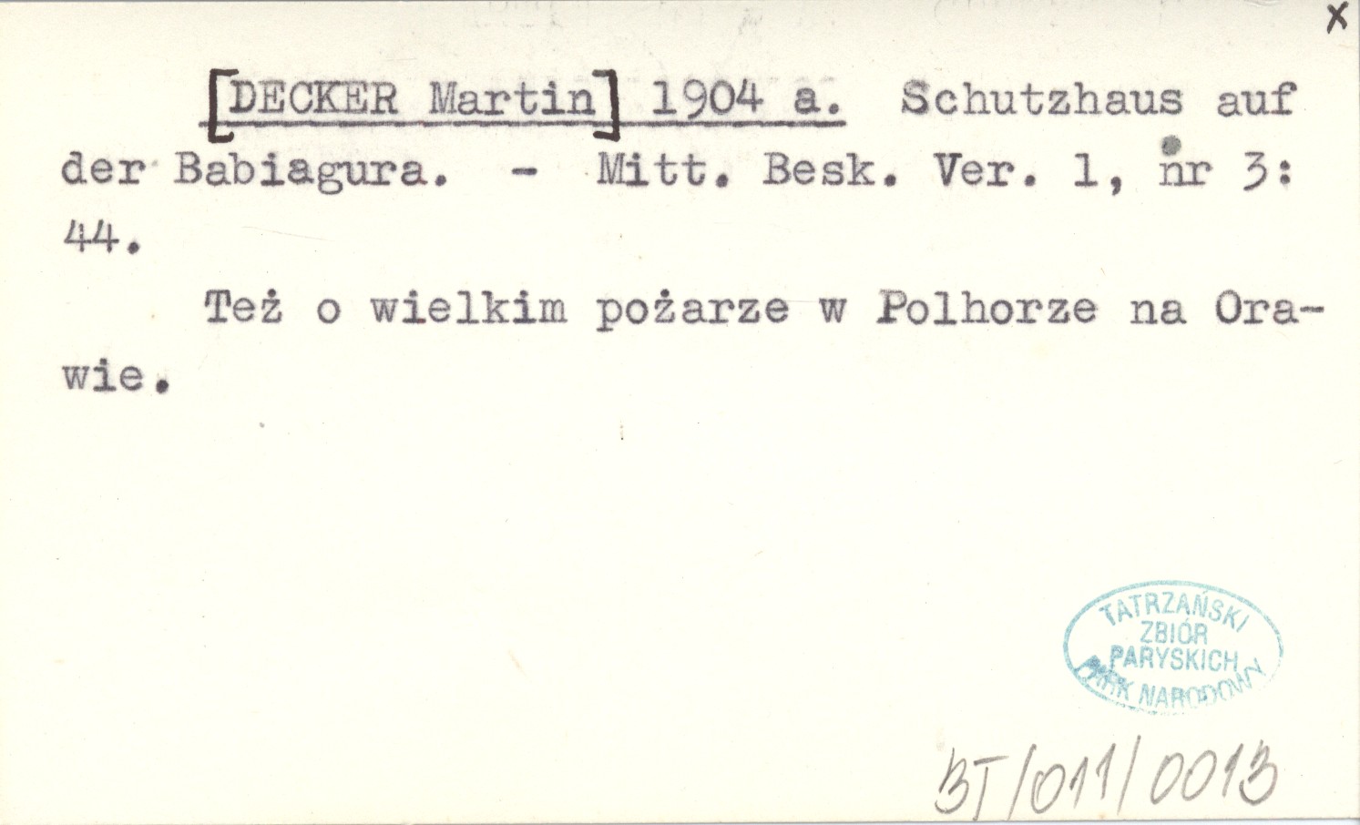 Mitt. Besk. Ver., 1, nr 3: 44. Też o wielkim pożarze w Polhorze na Orawie.