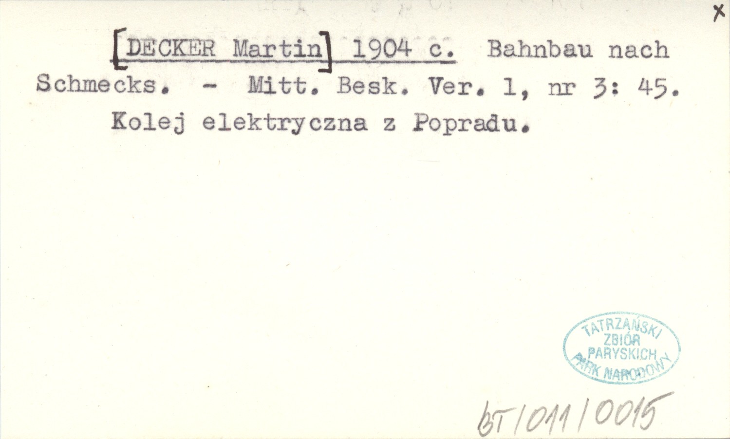 Mitt. Besk. Ver., 1, nr 3: 45. Kolej elektryczna z Popradu.