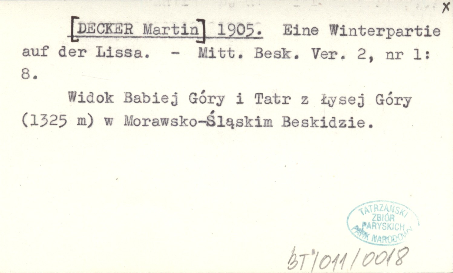 Mitt. Besk. Ver., 2, nr 1: 8. Widok Babiej Góry i Tatr z Łysej Góry (1325 m) w Morawsko-Śląskim Beskidzie.
