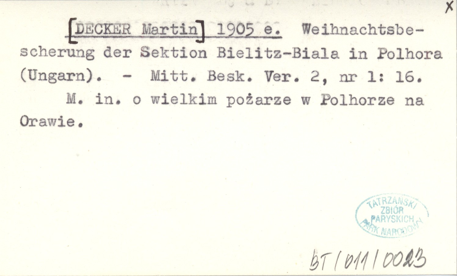 Mitt. Besk. Ver., 2, nr 1: 16. M. in. o wielkim pożarze w Polhorze na Orawie.