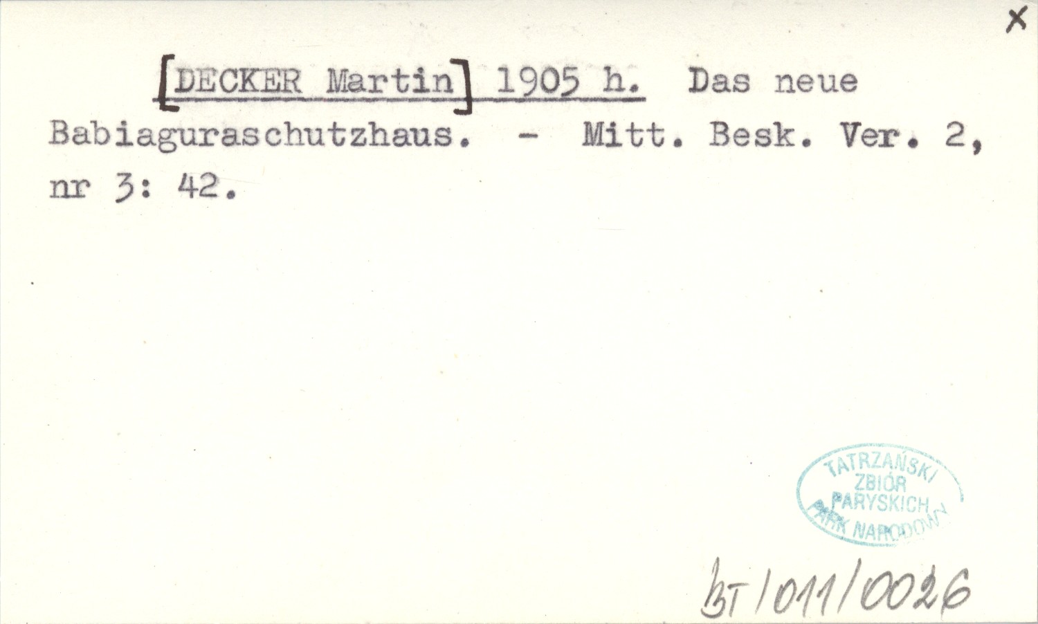 [DECKER Martin] 1905 h Das neue Babiaguraschutzhaus.