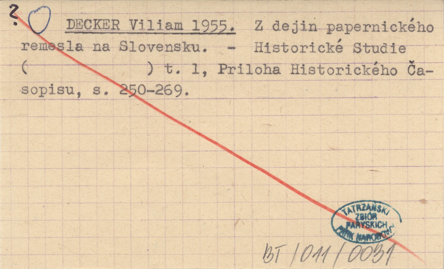 DECKER Viliam 1955 Z dejin papernického remesla na Slovensku.