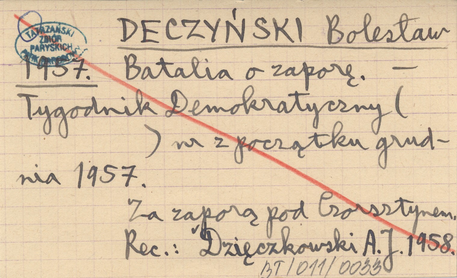 Tygodnik Demokratyczny, XII.1957. Za zaporę pod Czorsztynem. REC: Dzięczkowski A. J. 1958.