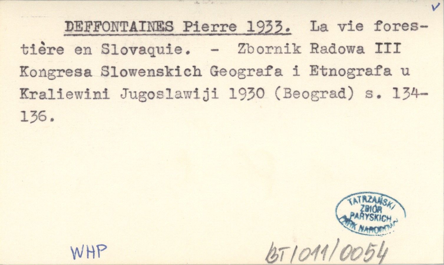 DEFFONTAINES Pierre 1933 La vie forestiére en Slovaquie.