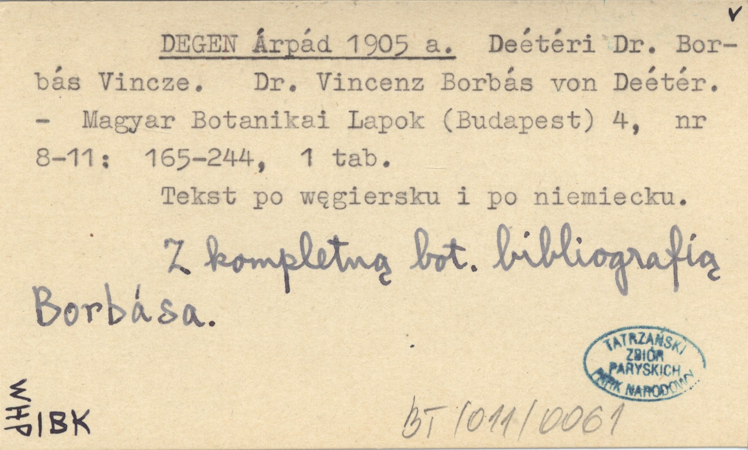 DEGEN Árpád 1905 a Deétéri Dr. Borbás Vincze. Dr. Vincenz Borbás von Deétér.