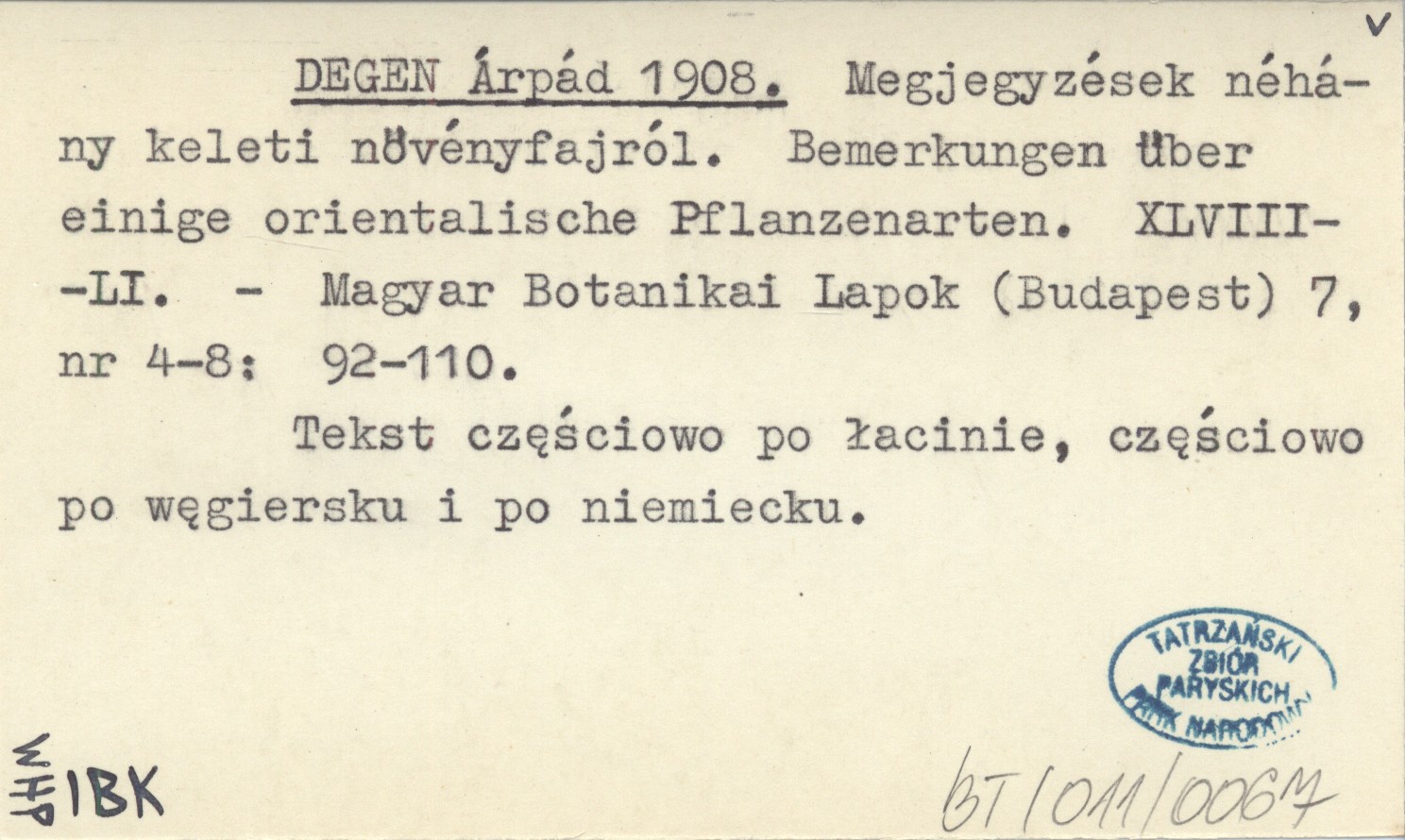 DEGEN Árpád 1908 Megjegyzések néhány keleti növényfajról. Bemerkungen über einige orientalische Pflanzenarten. XLVIII-LI.