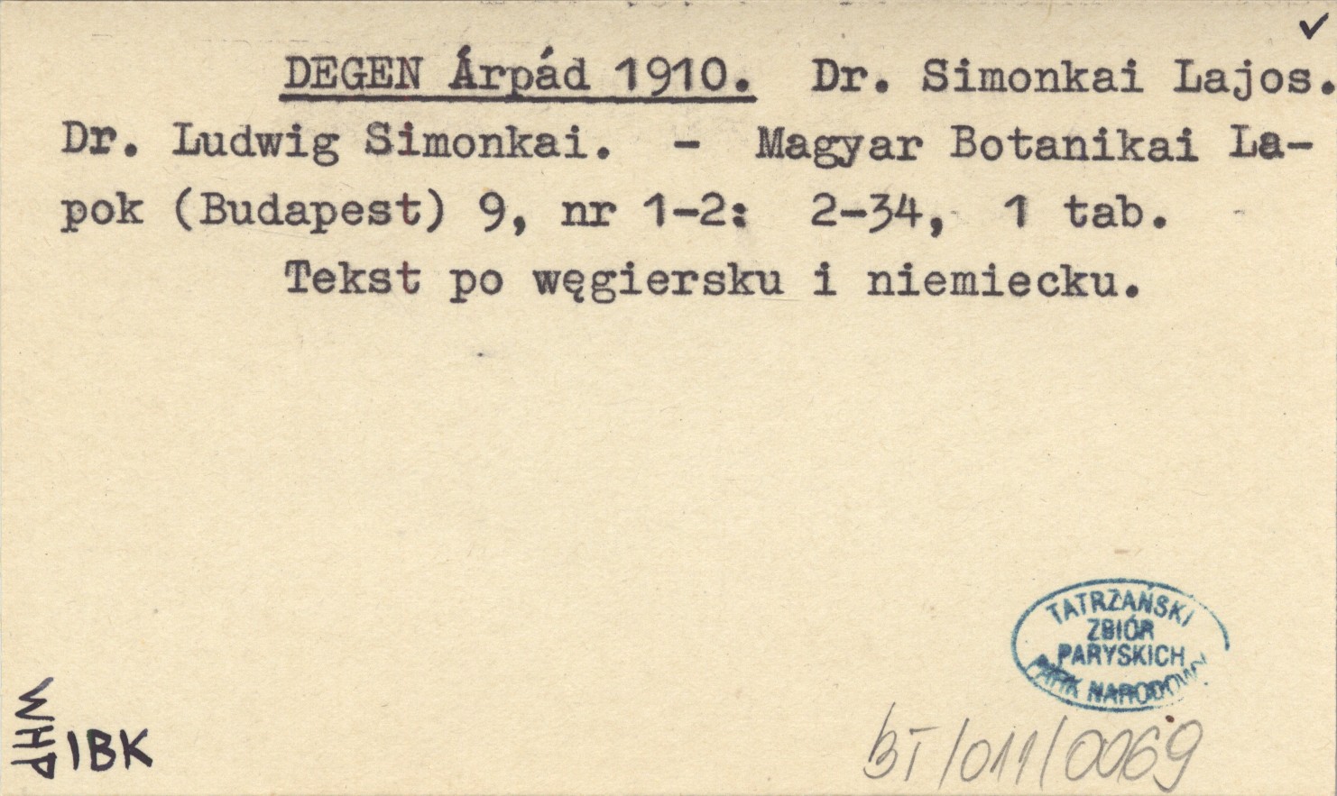 DEGEN Árpád 1910 Dr. Simonkai Lajos. Dr. Ludwig Simonkai.