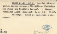DEGEN Árpád 1910 b Szalóki Róbert: Adatok Szepes vármegye flórájához. (Beiträge zur Flora des Komitats Szepes).