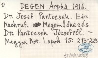 DEGEN Árpád 1916 Dr. Josef Pantocsek. Ein Nachruf. Megemlékezés Dr. Pantocsek Józsefről.