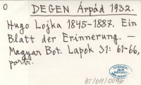 DEGEN Árpád 1932 Hugo Lojka 1845-1887. Ein Blatt der Erinnerung.