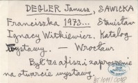 DEGLER Janusz SAWICKA, Franciszka. ; 1973... Stanisław Ignacy Witkiewicz. Katalog wystawy.