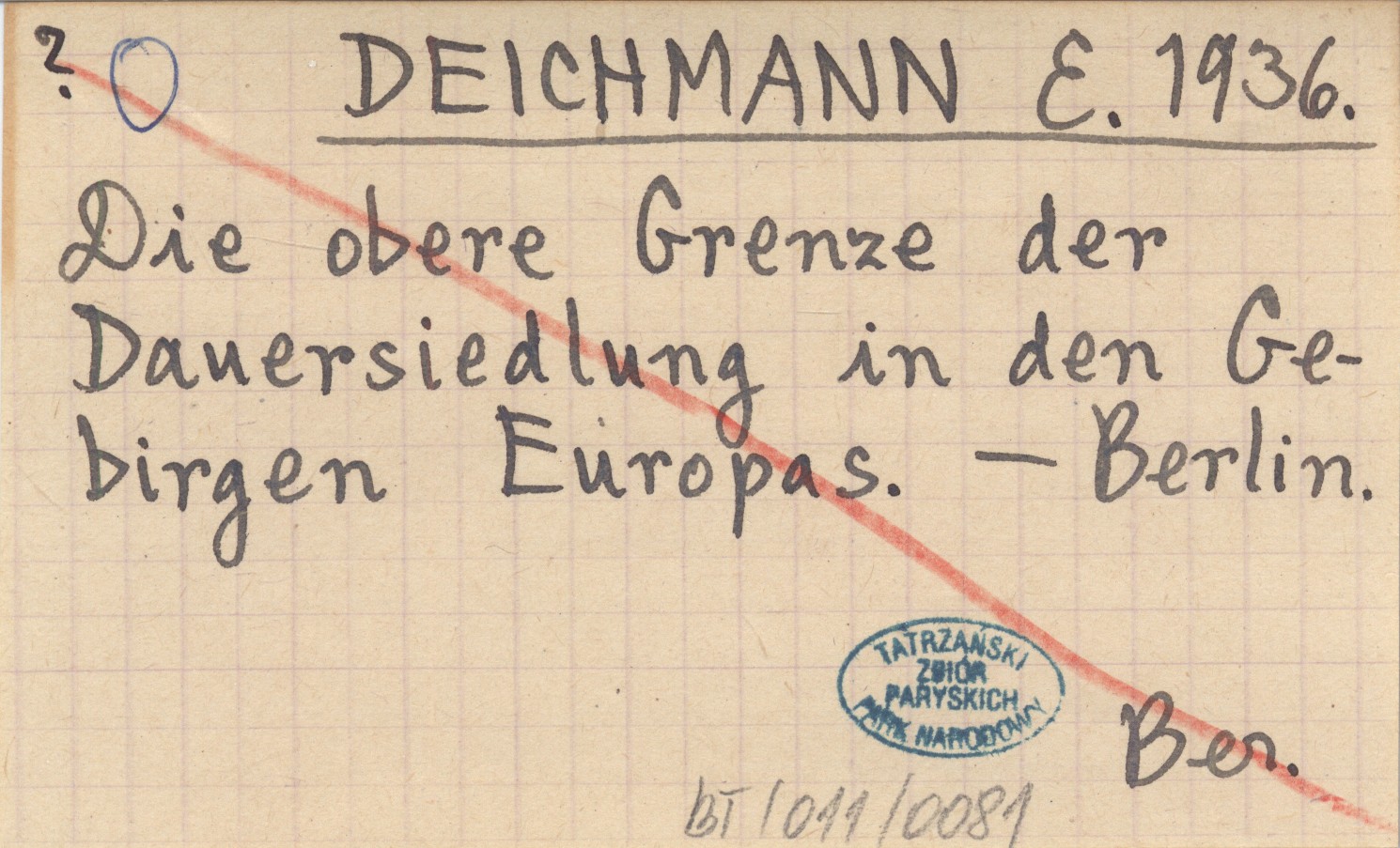 DEICHMANN E. 1936 Die obere Grenze der Dauersiedlung in den Gebirgen Europas.