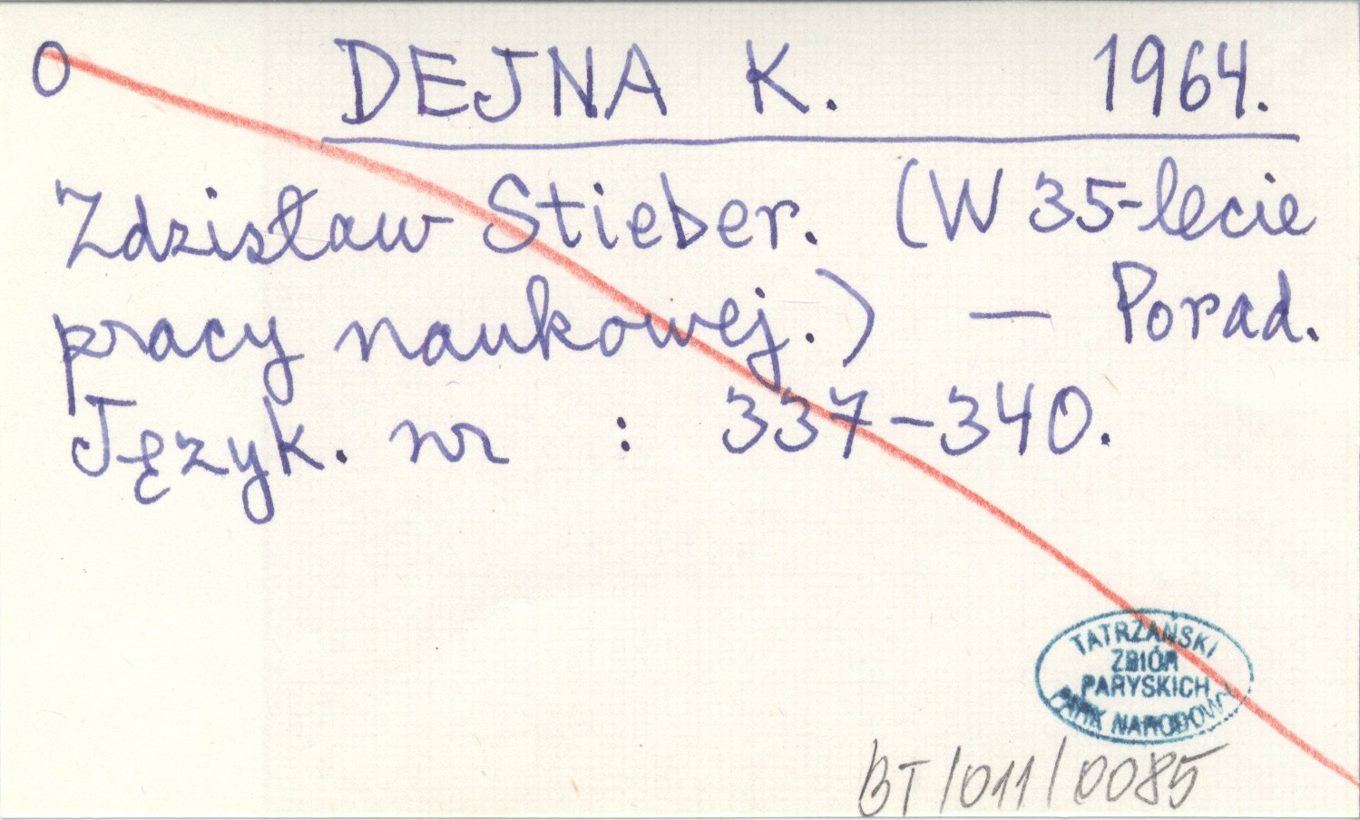 DEJNA K. 1964 Zdzisław Stieber. (W 35-lecie pracy naukowej).
