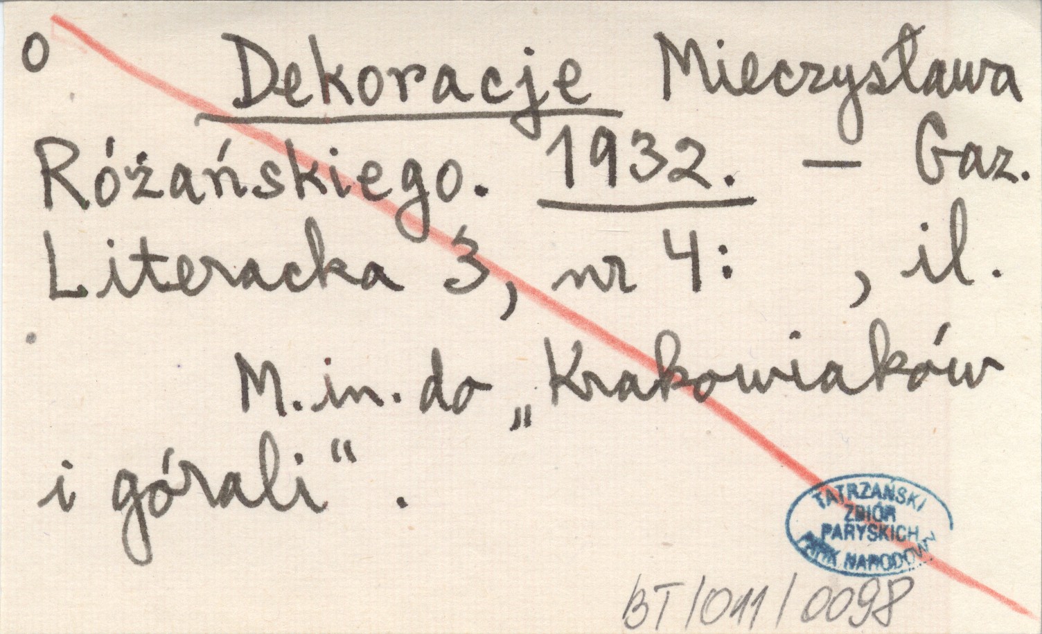 Projekt Digitalizacja fiszek z Bibliografią Tatr i Podtatrza Witolda Henryka Paryskiego jest finansowany ze środków Ministra Kultury i Dziedzictwa Narodowego oraz Tatrzańskiego Parku Narodowego.