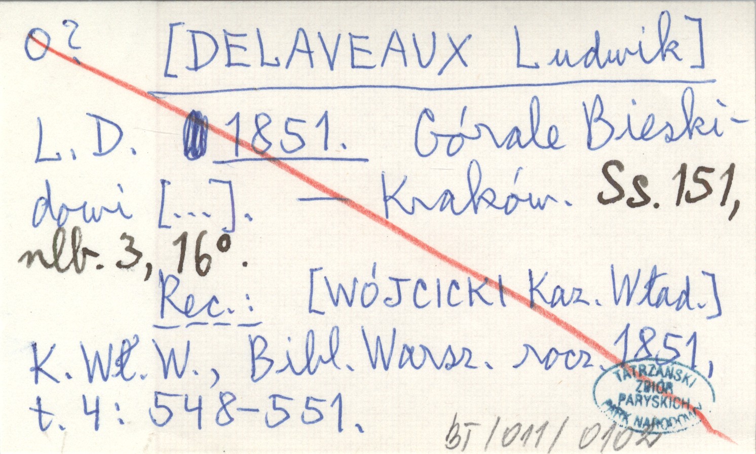 Kraków , 151 s., [3], 16°. REC: [WÓJCICKI Kaz. Wład.] K. Wł. W., Bibl. Warsz. rocz. 1851, t. 4: 548-551. Czas r. 1851, 100 m.