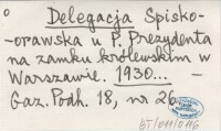 Delegacja Spisko-orawska u P. Prezydenta na zamku królewskim w Warszawie. 1930...