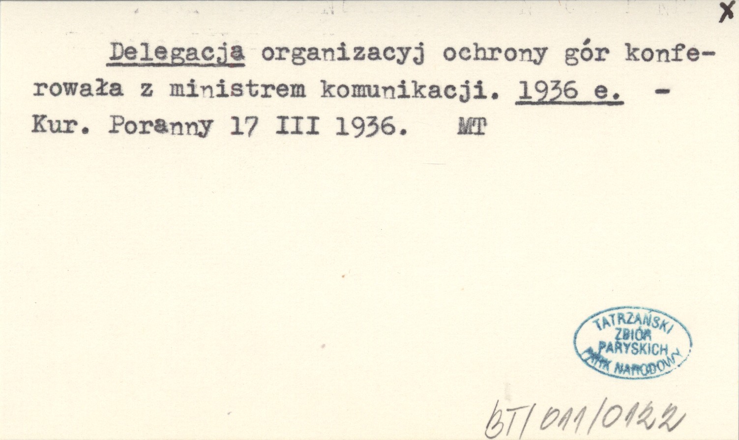 Delegacja organizacyj ochrony gór konferowała z ministrem komunikacji. 1936 e
