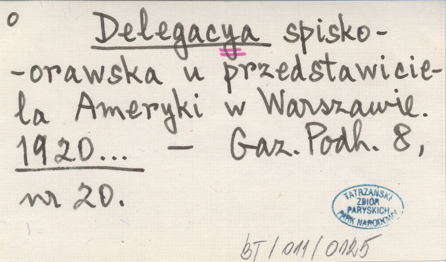 Delegacya spisko-orawska u przedstawiciela Ameryki w Warszawie. 1920...