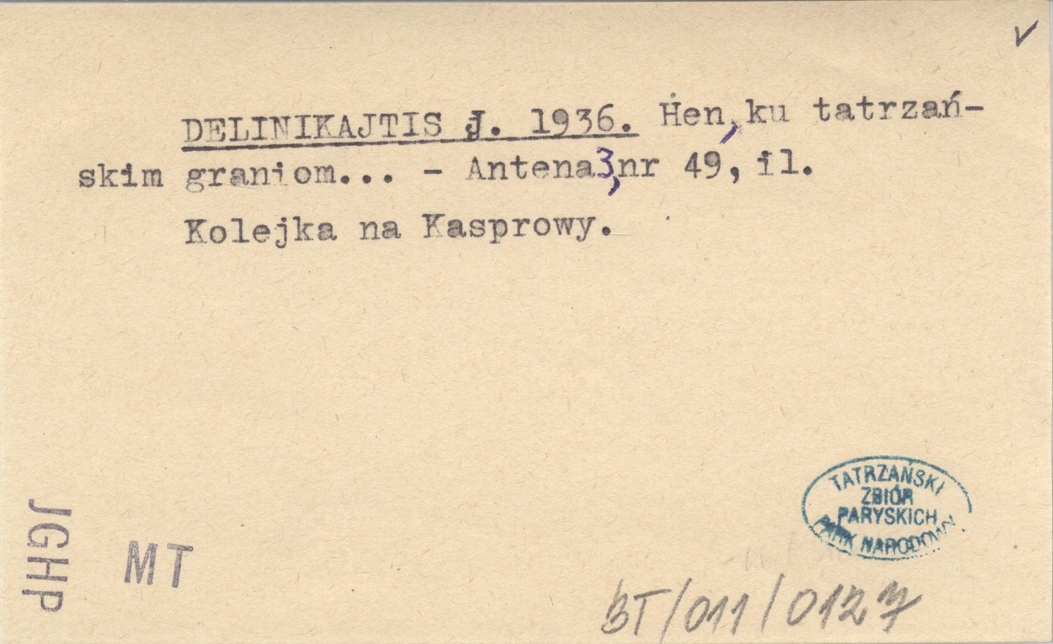 DELINIKAJTIS J. 1936 Hen, ku tatrzańskim graniom...