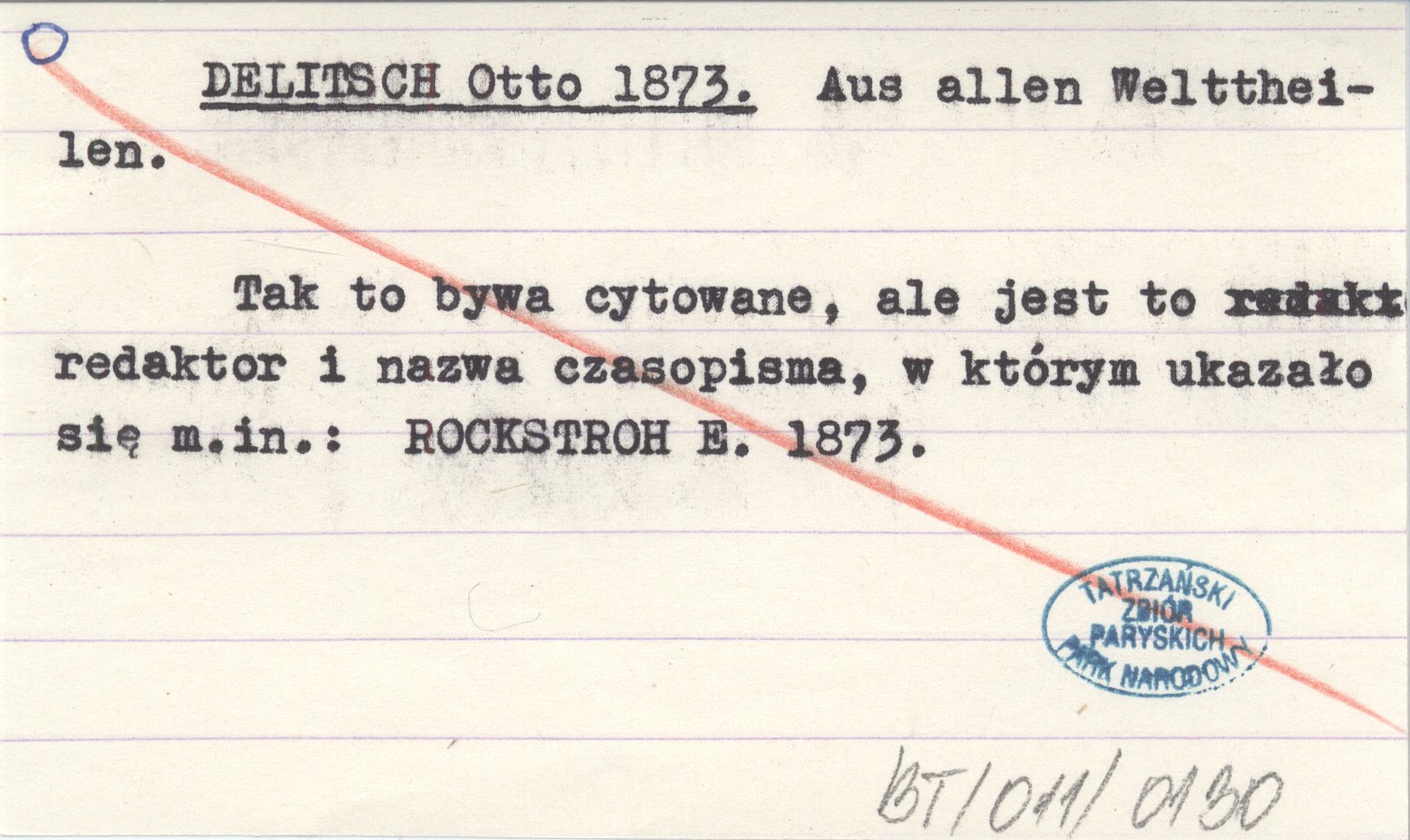 Aus allen Welttheilen, Tak to bywa cytowane, ale jest to redaktor i nazwa czasopisma, w którym ukazało się m. in.: ROCKSTROH E. 1873.