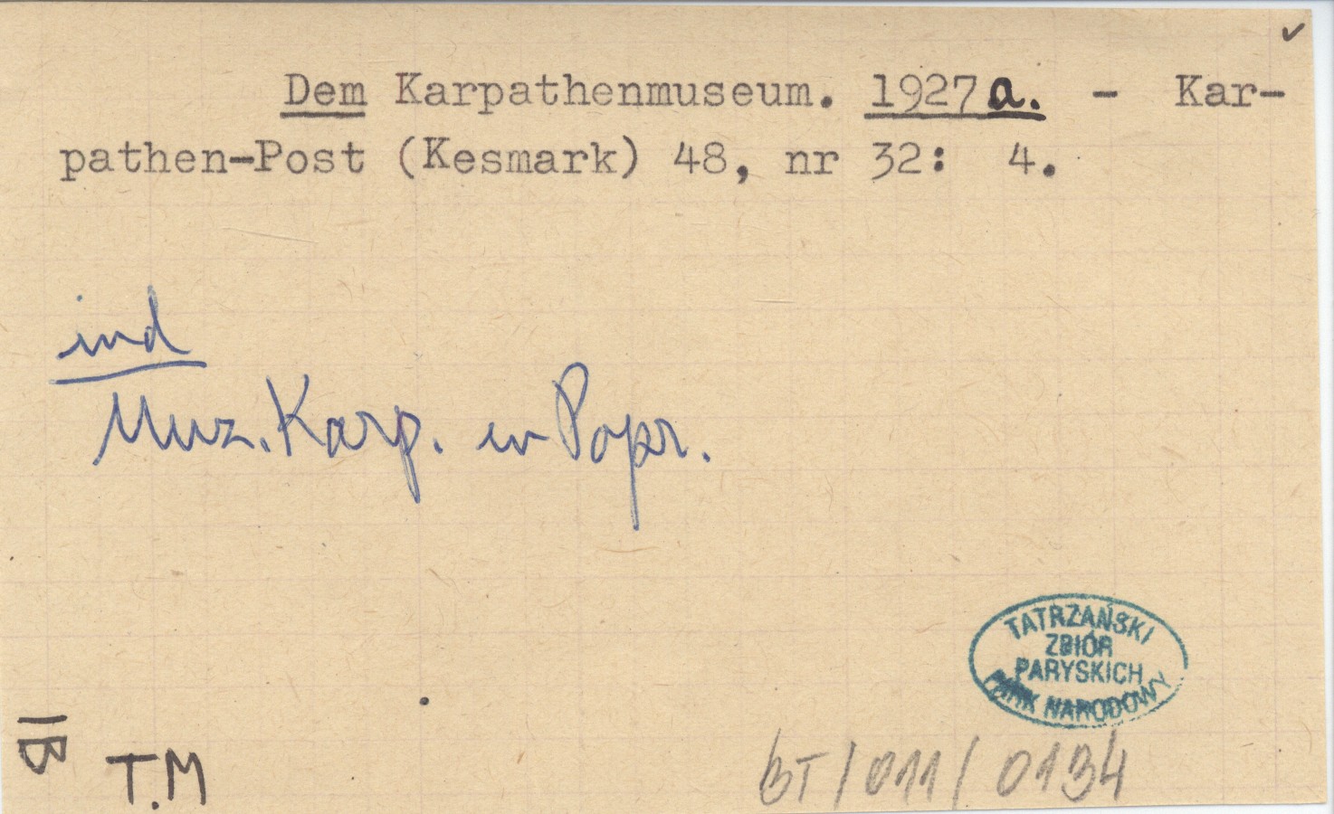 Projekt Digitalizacja fiszek z Bibliografią Tatr i Podtatrza Witolda Henryka Paryskiego jest finansowany ze środków Ministra Kultury i Dziedzictwa Narodowego oraz Tatrzańskiego Parku Narodowego.