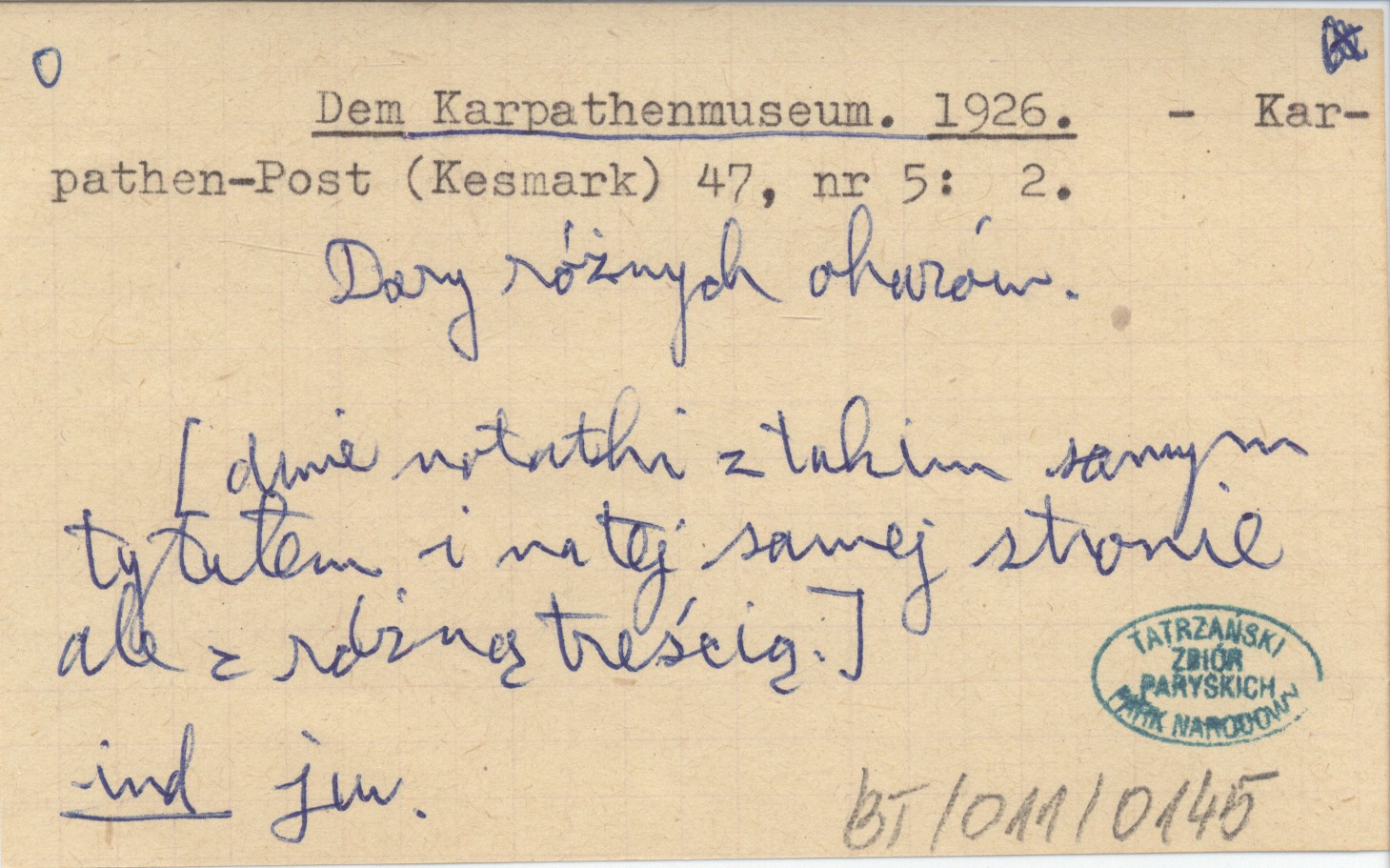Projekt Digitalizacja fiszek z Bibliografią Tatr i Podtatrza Witolda Henryka Paryskiego jest finansowany ze środków Ministra Kultury i Dziedzictwa Narodowego oraz Tatrzańskiego Parku Narodowego.