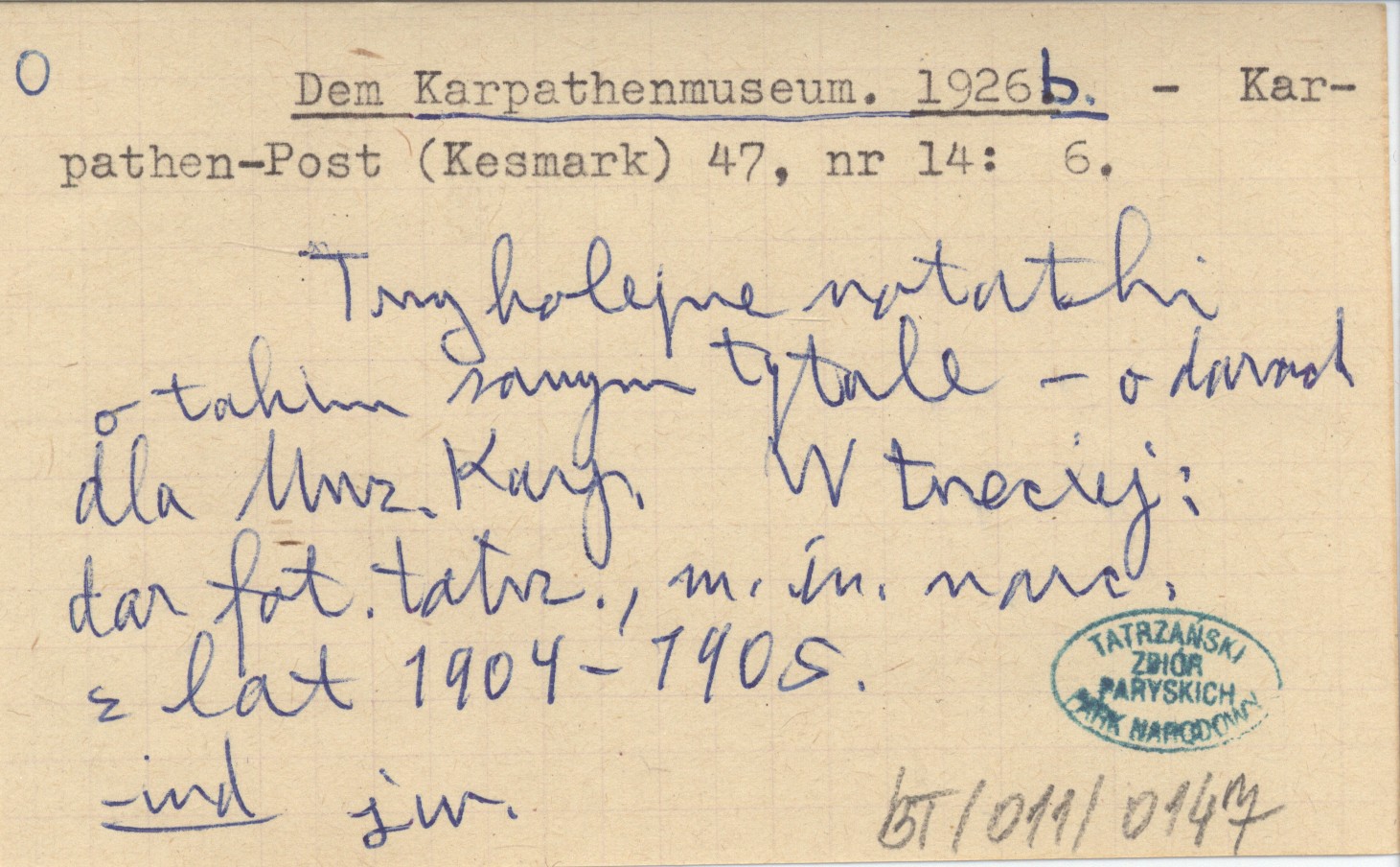 Projekt Digitalizacja fiszek z Bibliografią Tatr i Podtatrza Witolda Henryka Paryskiego jest finansowany ze środków Ministra Kultury i Dziedzictwa Narodowego oraz Tatrzańskiego Parku Narodowego.