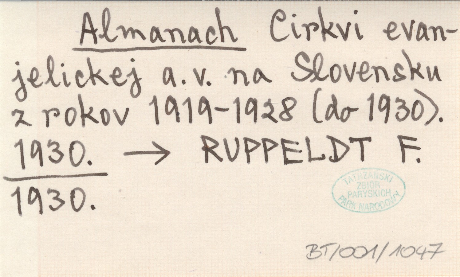 Almanach Cirkvi evanjelickej a. v. na Slovensku z rokov 1919-1928 (do 1930). 1930