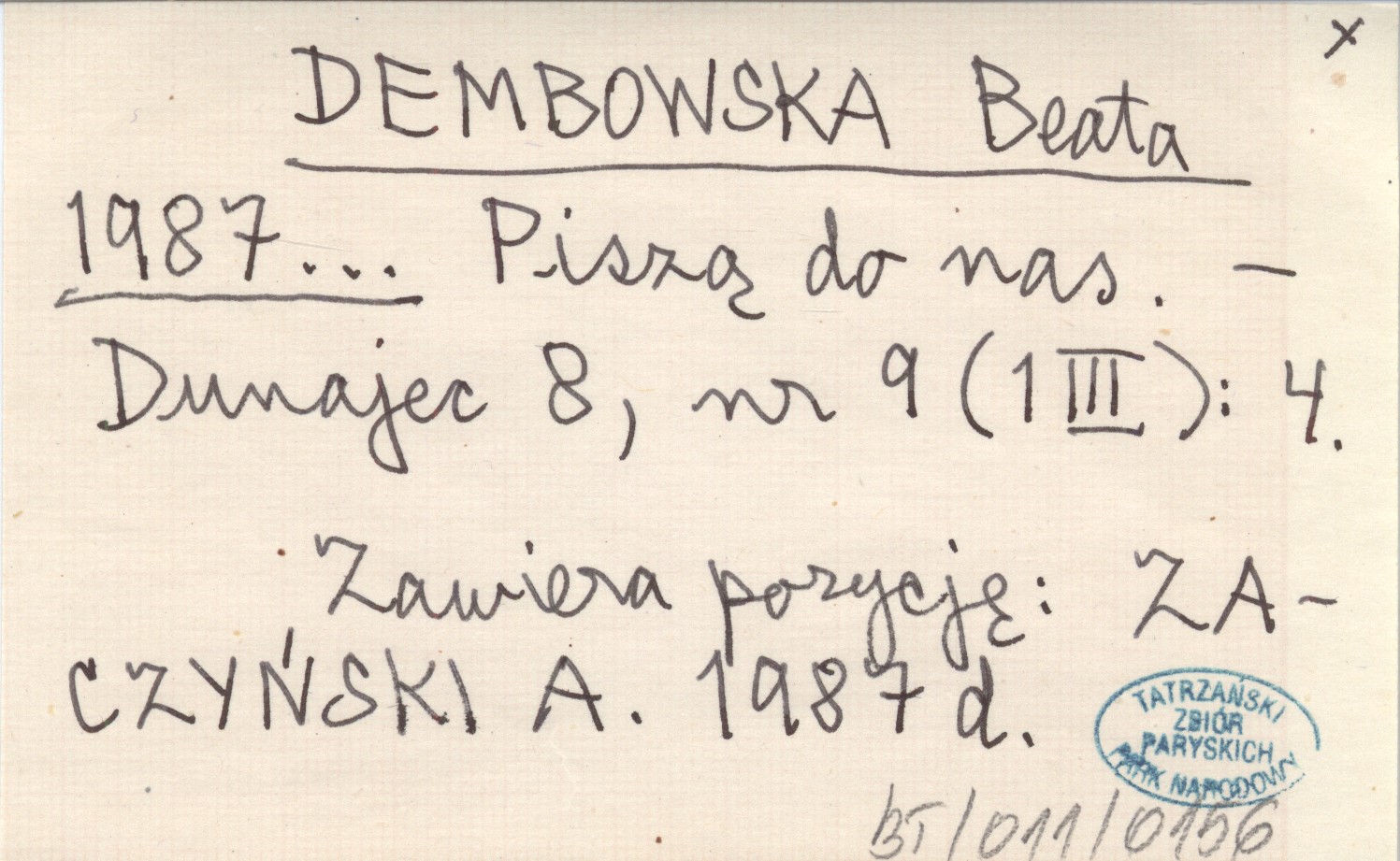 Dunajec, 8, nr 9 (1 III): 4. Zawiera pozycję: ZACZYŃSKI A. 1987 d.