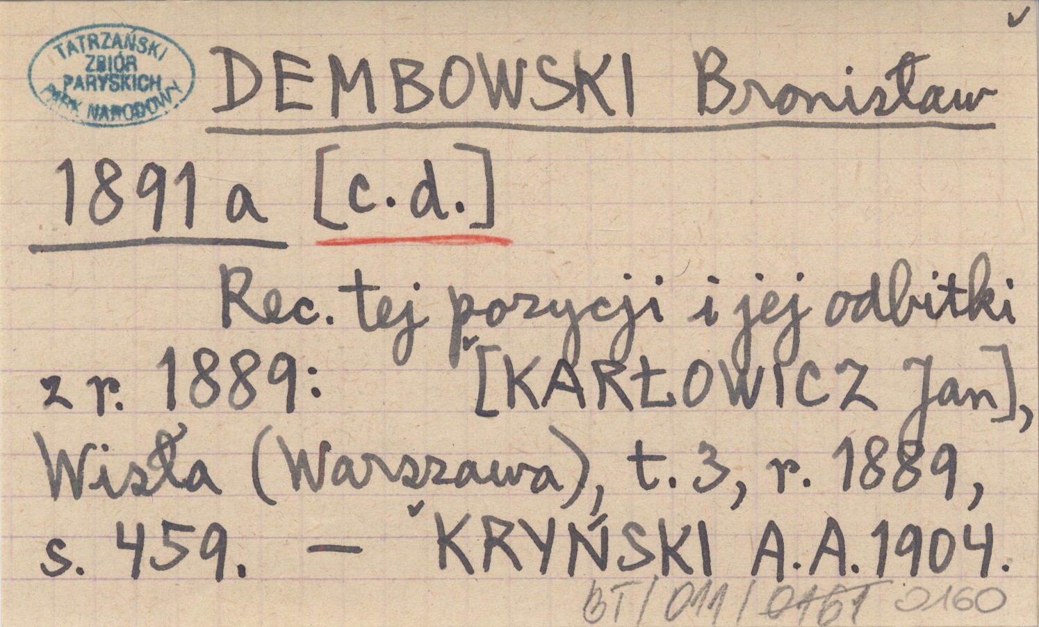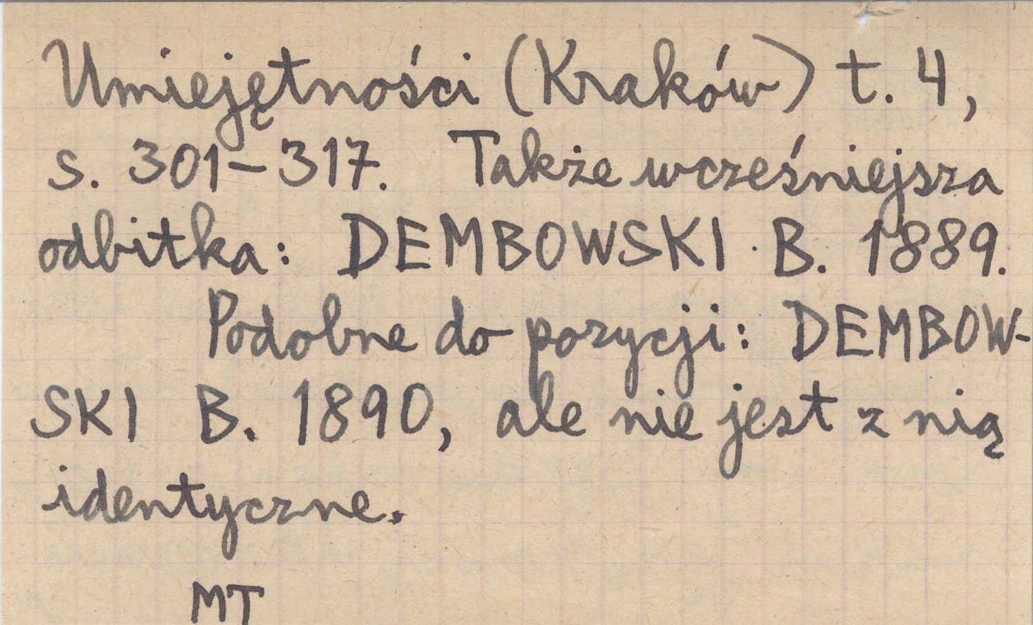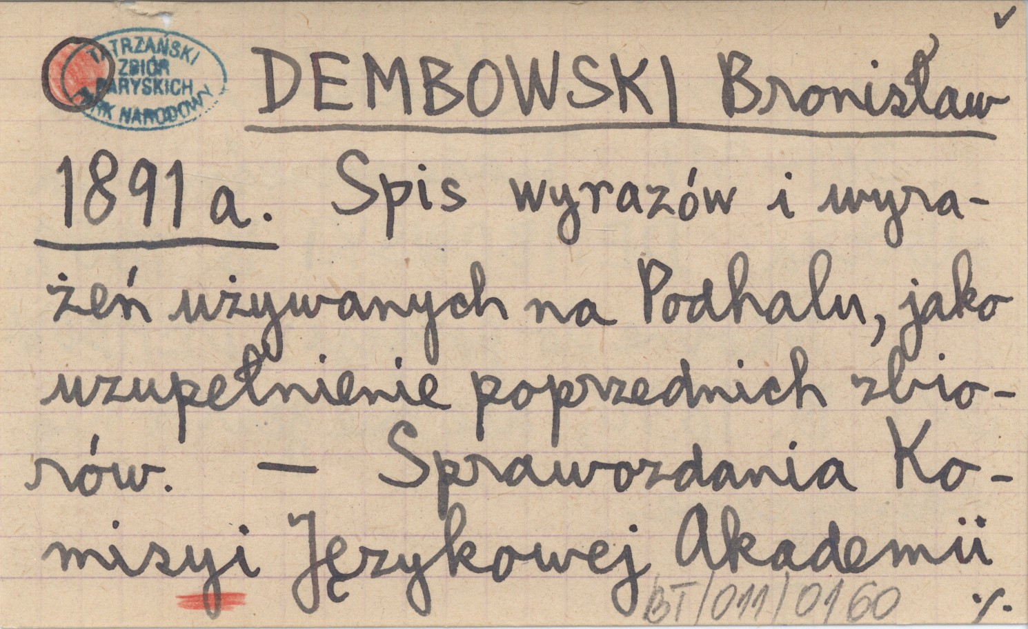 Sprawozdania Komisyi Językowej Akademii Umiejętności (Kraków) , T. 4, S. 301-317. Także wcześniejsza odbitka: DEMBOWSKI B. 1889. Podobne do pozycji: DEMBOWSKI B. 1890, ale nie jest z nią identyczne. REC: Rec. tej pozycji i jej pdbitki z r. 1889: [KARŁOWICZ Jan], Wisła (Warszawa), t. 3, r. 1889, S. 459. KRYŃSKI A.A. 1904.