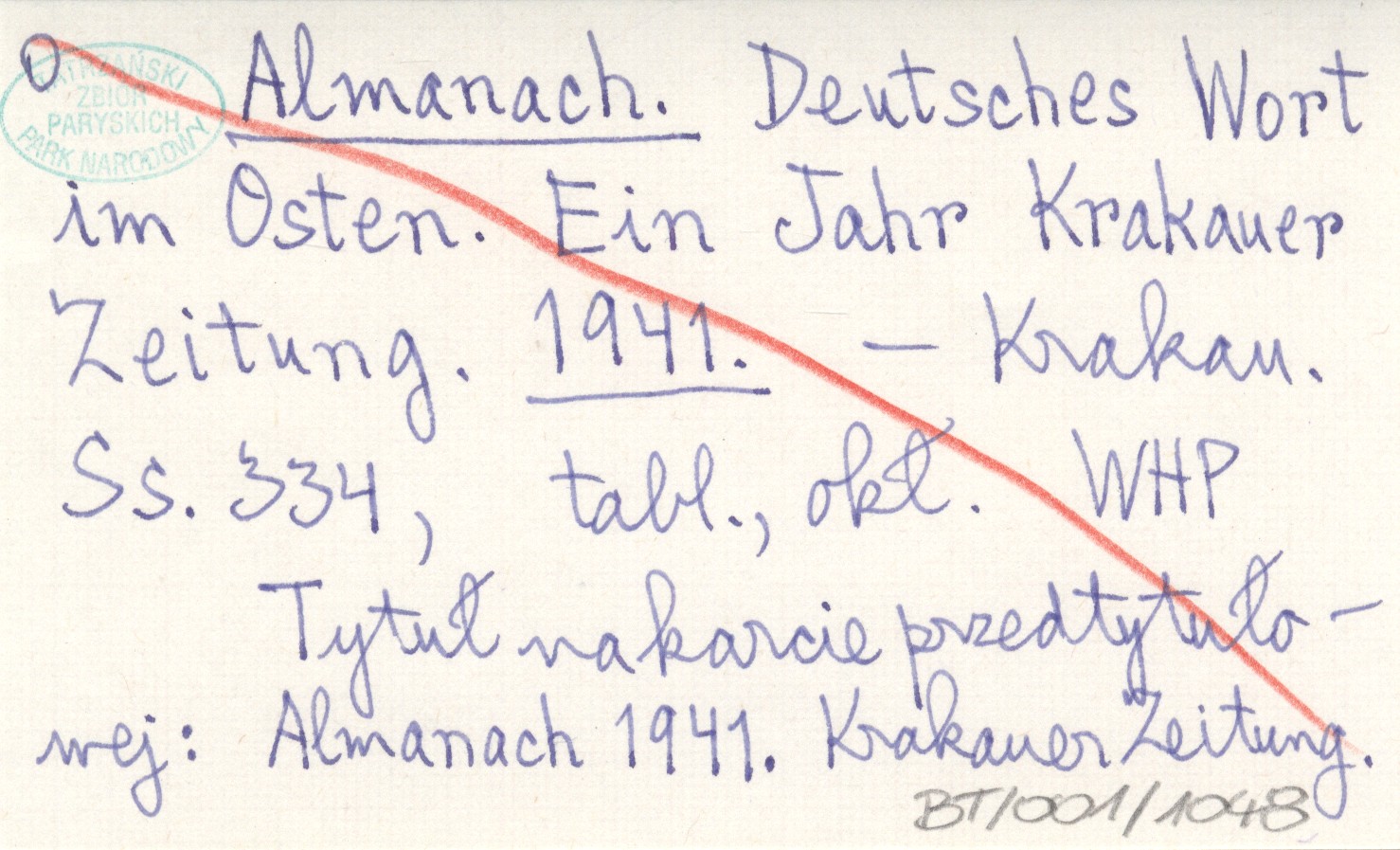Krakau , 334 s., tabl., okł. Tytuł na karcie przedtytułowej: Almanach 1941. Krakauer Zeitung.