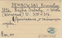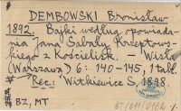 DEMBOWSKI Bronisław [mylnie Stanisław] 1899 Sabałowa bajka o śmierci.