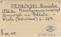 DEMBOWSKI Bronisław 1892 a Nawoływania zwierząt domowych na Podhalu.