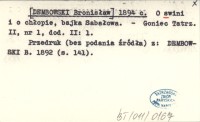 [DEMBOWSKI Bronisław] 1894 c O swini i o chłopie, bajka Sabałowa.