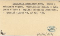 DEMBOWSKI Bronisław 1902 Bajka o zaśnionem wojsku. Opowiedział Sabała w Zakopanem w 1888 r. Zapisał Bronisław Dembowski.