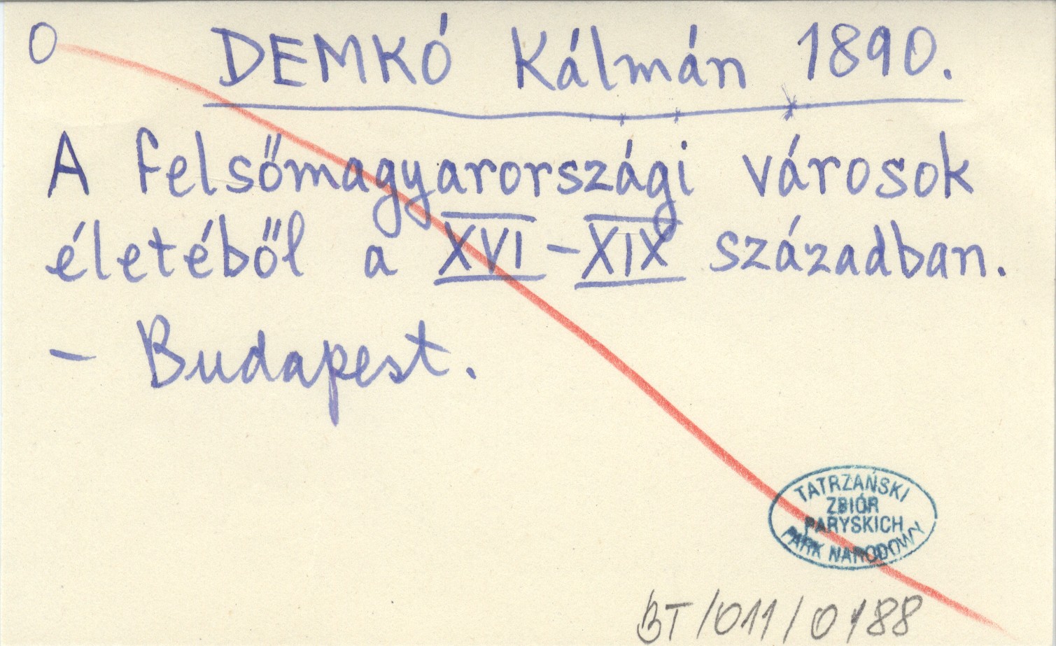 DEMKÓ Kálmán 1890 A felsőmagyarországi városok életéből a XVI-XIX században.