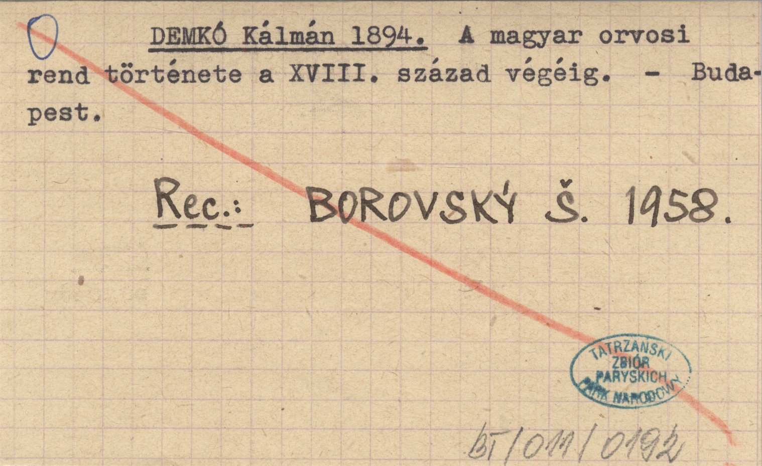 DEMKÓ Kálmán 1894 A magyar orvosi rend története a XVIII. század végéig.