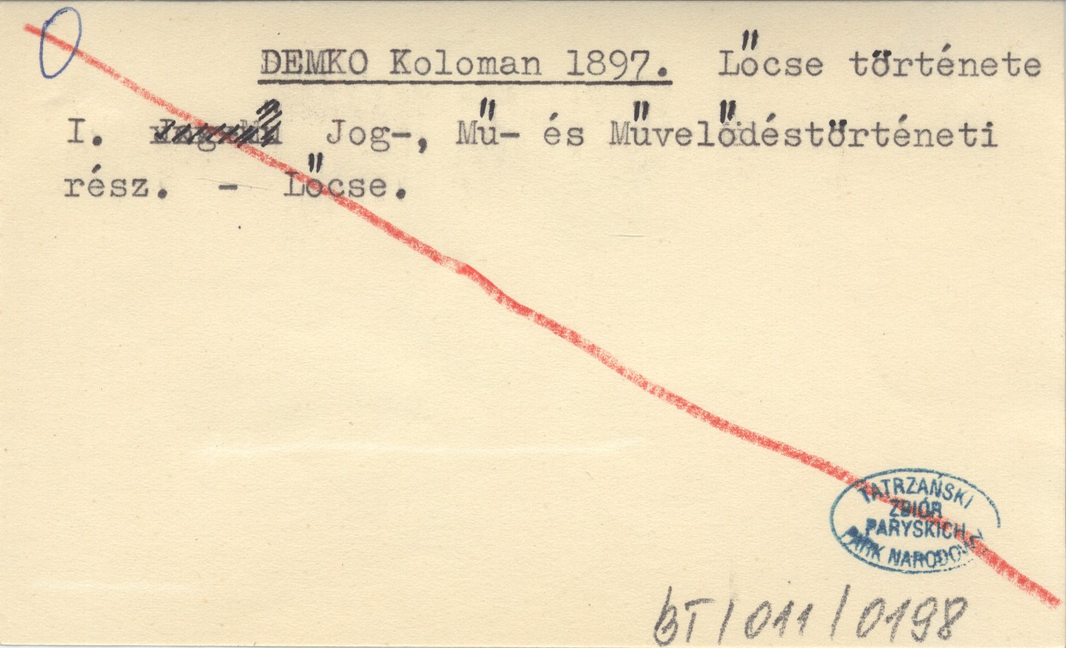 DEMKO Koloman 1897 Lőcse tötrénete I. Jog.- Mű- és Művelődéstörténeti rész.
