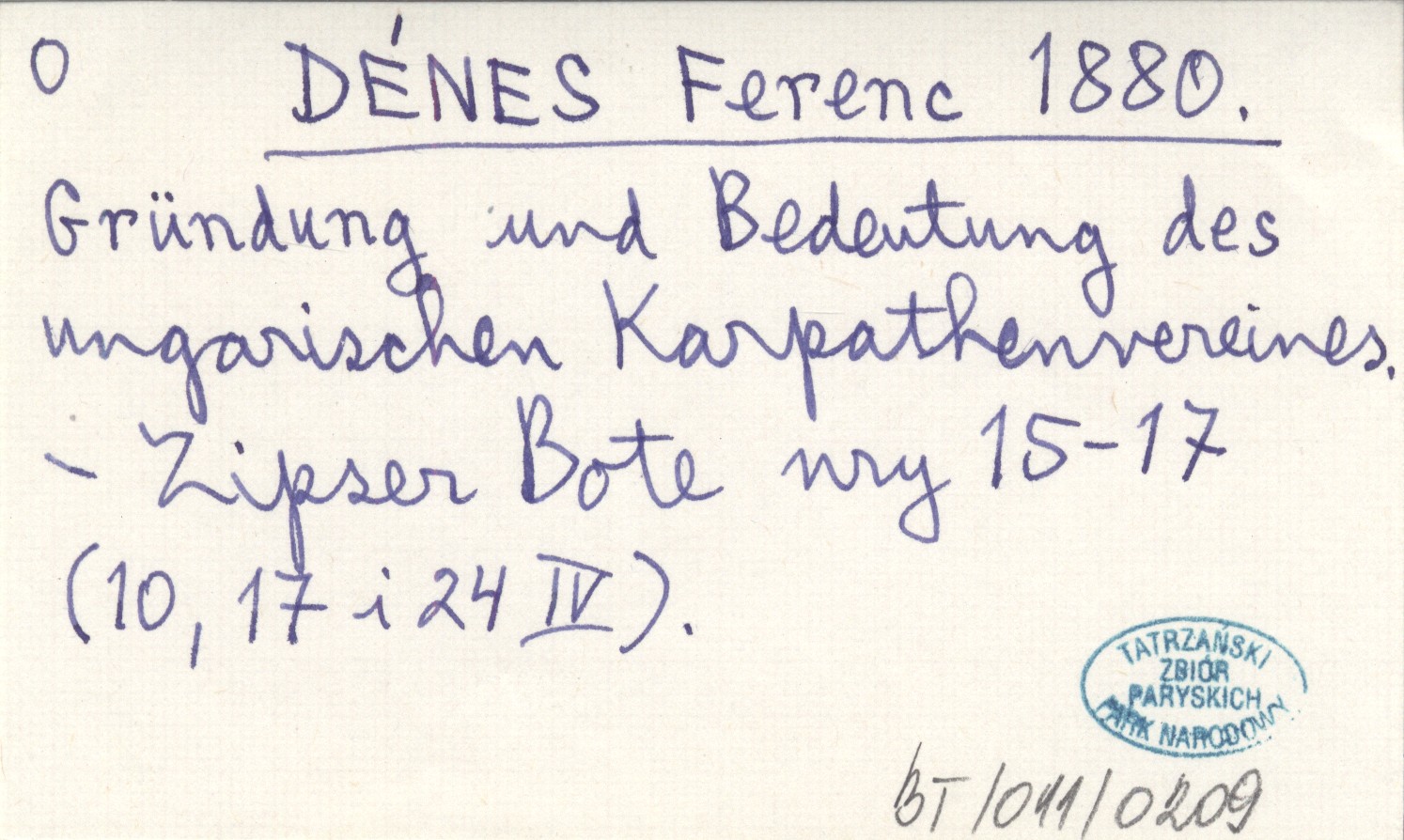 DÉNES Ferenc 1880 Gründung und Bedeutung des ungarischen Karpathenvereines.