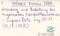 DÉNES Franz 1881 a Ungarisches Karpathen-Museum.