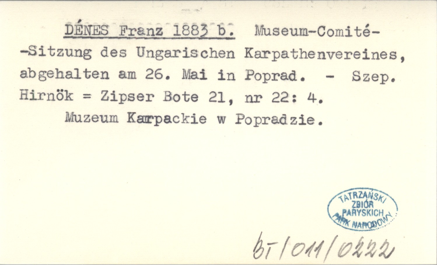 DÉNES Franz 1883 b Museum-Comité-Sitzung des Ungarischen Karpathenvereines, abgehalten am 26. Mai in Poprad.