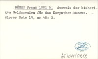 DÉNES Franz 1881 e Spenden-Ausweis für das Ung. Karpathen-Museum.