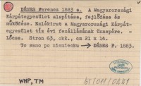 DÉNES Ferencz 1883 a A Magyarországi Kárpátegyesület alapítása, fejlődése és működése. Emlékitar a Magyarországi Kárpátegyesület tíz évi fenállásának ünnepére.
