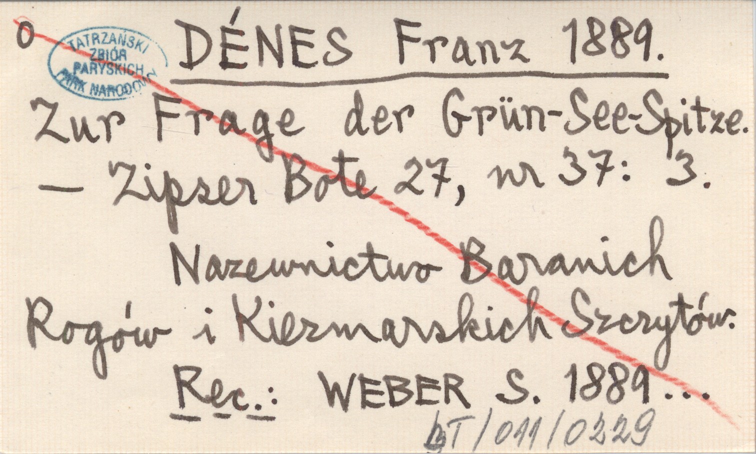 Zipser Bote, 27, nr 37: 3. Nazewnictwo Baranich Rogów i Kiezmarskich Szczytów. REC: WEBER S, 1889...