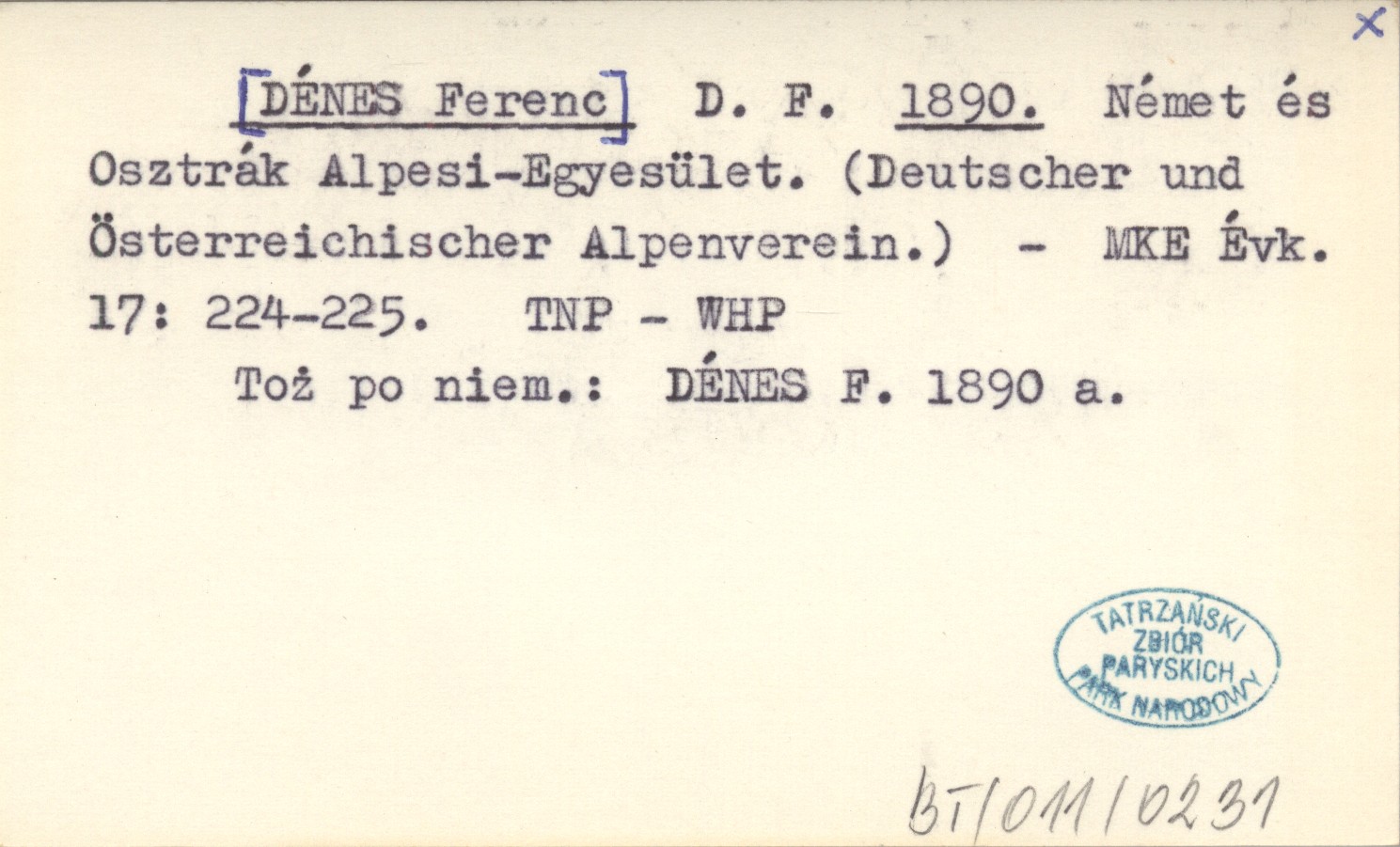 D. F. [DÉNES Ferenc] 1890 Német és Osztrák Alpesi-Egyesület. (Deutscher und Österreichischer Alpenverein).